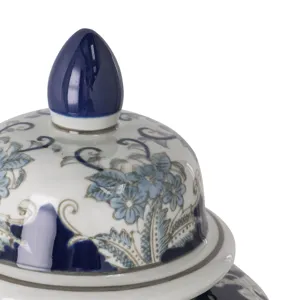 The pointed finial lid and timeless baluster form allow this jar to complement traditional, Chinoiserie, and transitional themes, ensuring it can fit into any interior setting seamlessly