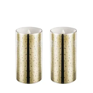 Introduce all the benefits of a warm, flickering authentic candle to your home without the need to worry about dripping wax, smoke, or fire risks with this pair of LED alternatives. Crafted from genuine paraffin wax, each candle in this two-piece set is encircled with a cylindrical glass casing that boasts a speckled gold finish.