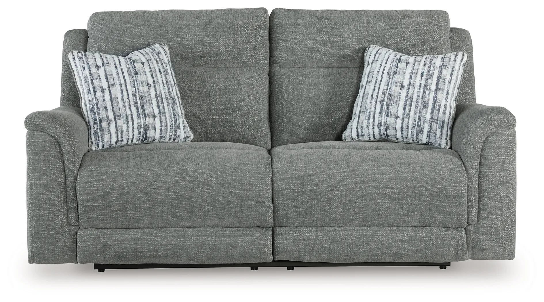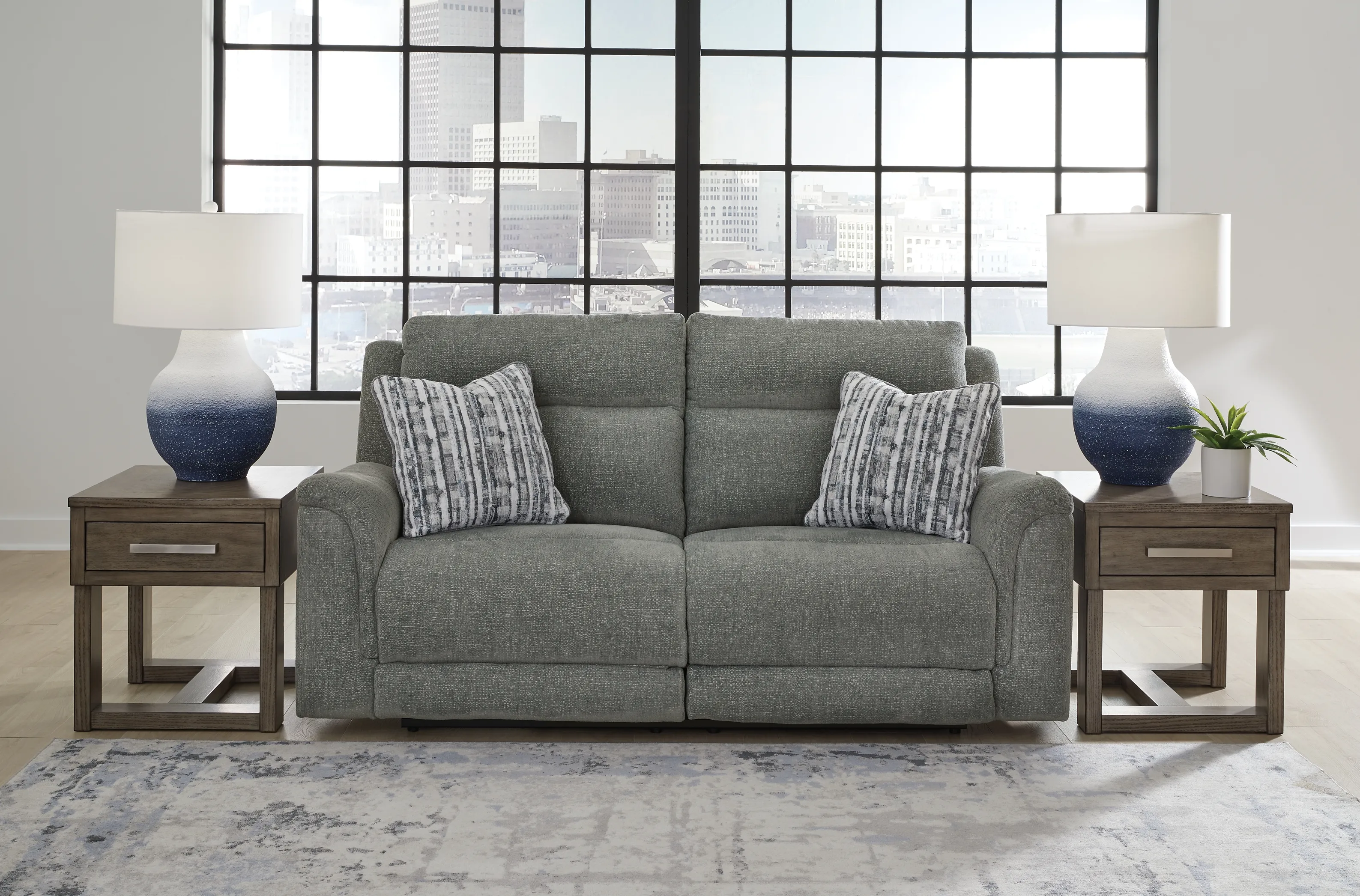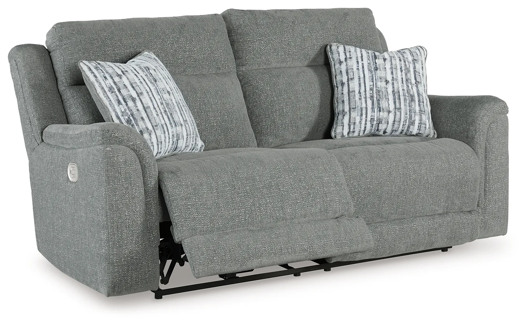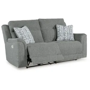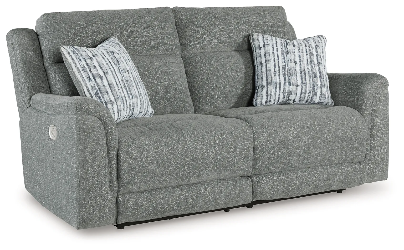 Recline, relax and revel in functionality. This power reclining sofa is designed for comfort and durability—and did we mention its can’t-miss contemporary style? One-touch controls and adjustable headrests effortlessly bring you to your ideal reclined position. Plus the easy-to-clean Next-Gen Nuvella™ performance fabric makes maintenance simple. Chic abstract accent pillows, complete with machine-washable covers, polish off the look.