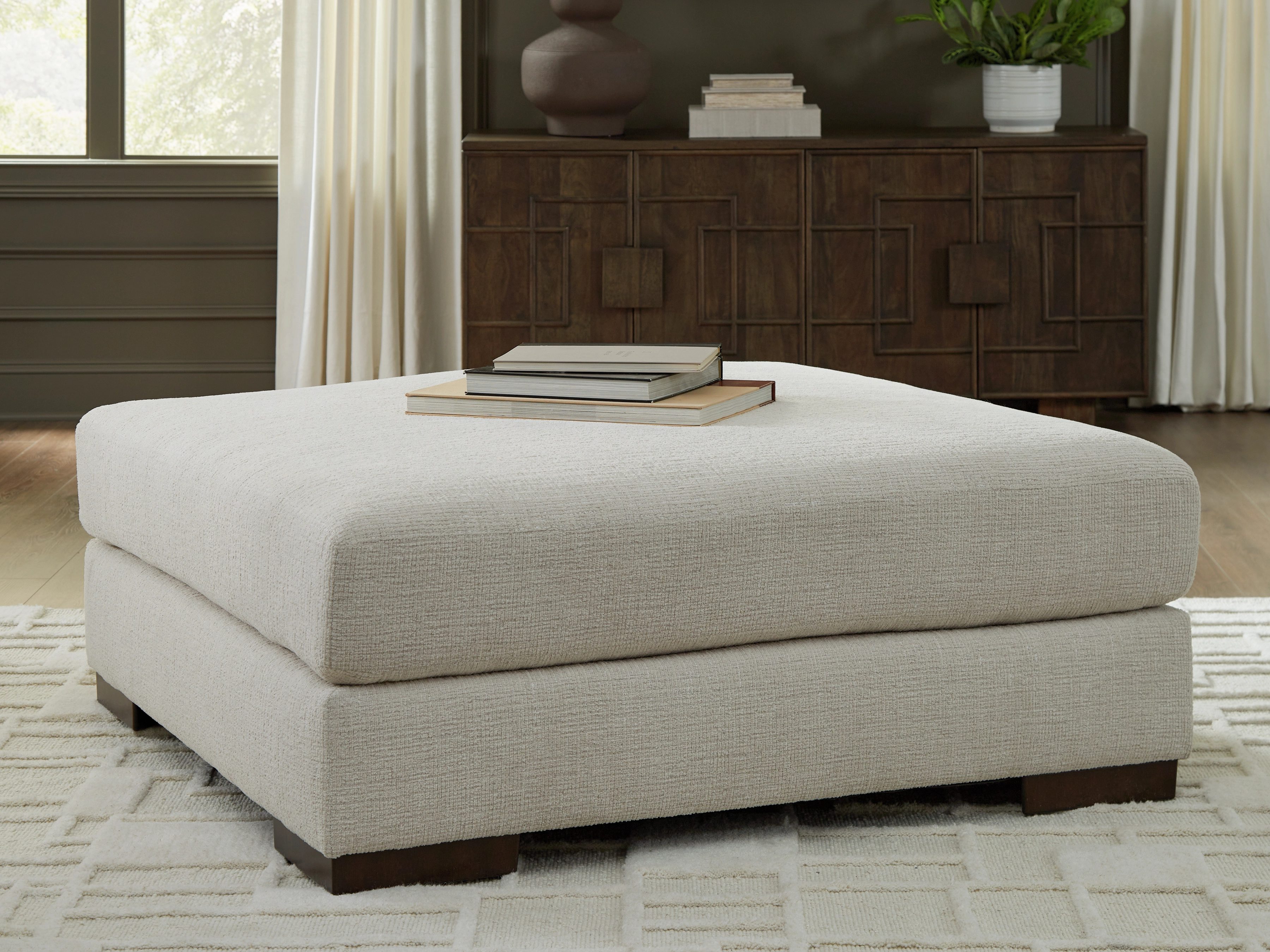 The simple, streamlined style of this oversized accent ottoman is the perfect choice for your casual contemporary home. A spacious cushion and neutral-hued chenille fabric take a relaxed approach to modern flair, creating a fashionable and comfortable retreat for your feet.