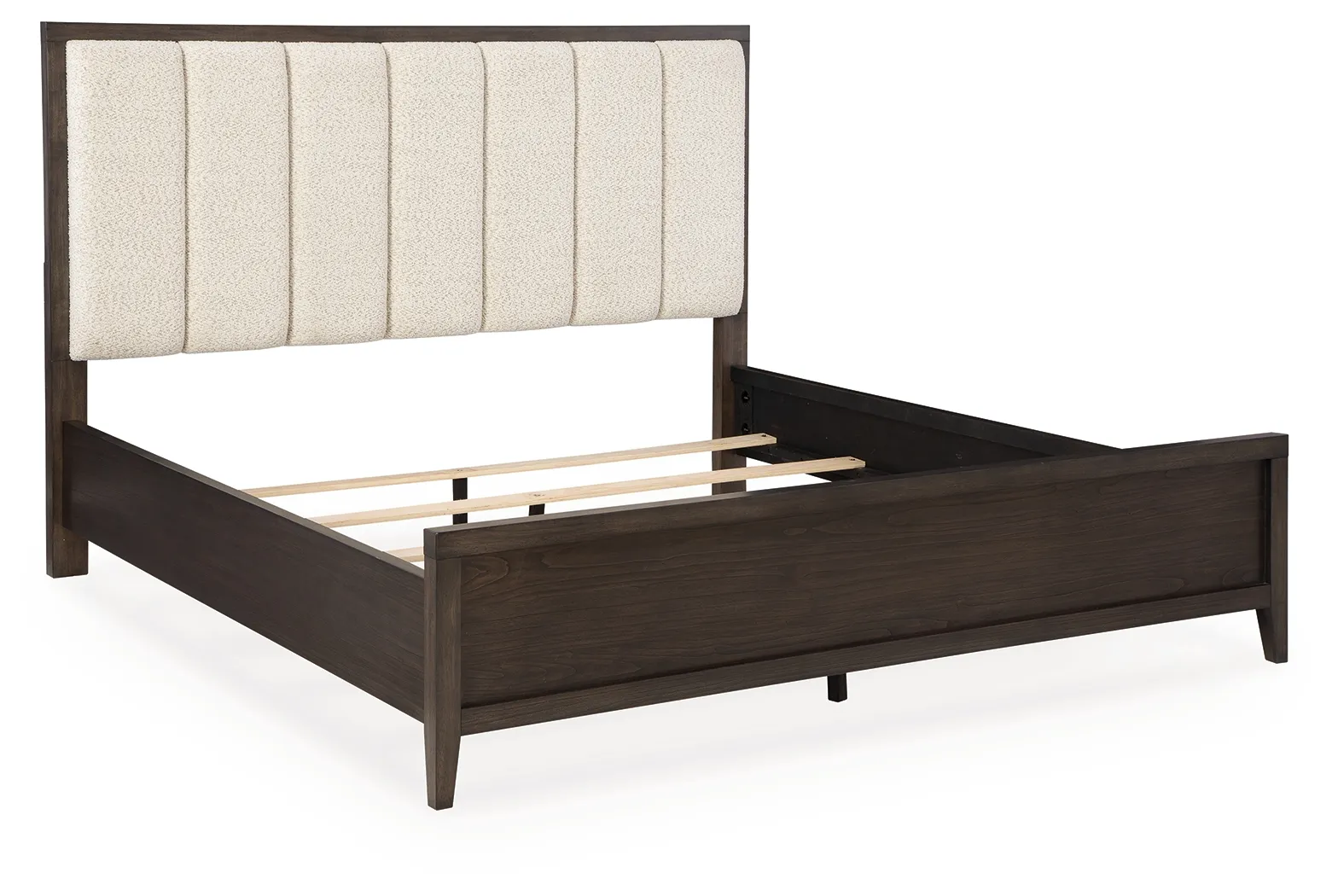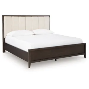 Create your ideal sanctuary with this king upholstered panel bed. The dark espresso brown finish and clean lines are undeniably contemporary, but the attitude is more relaxed—our interpretation of metropolitan...