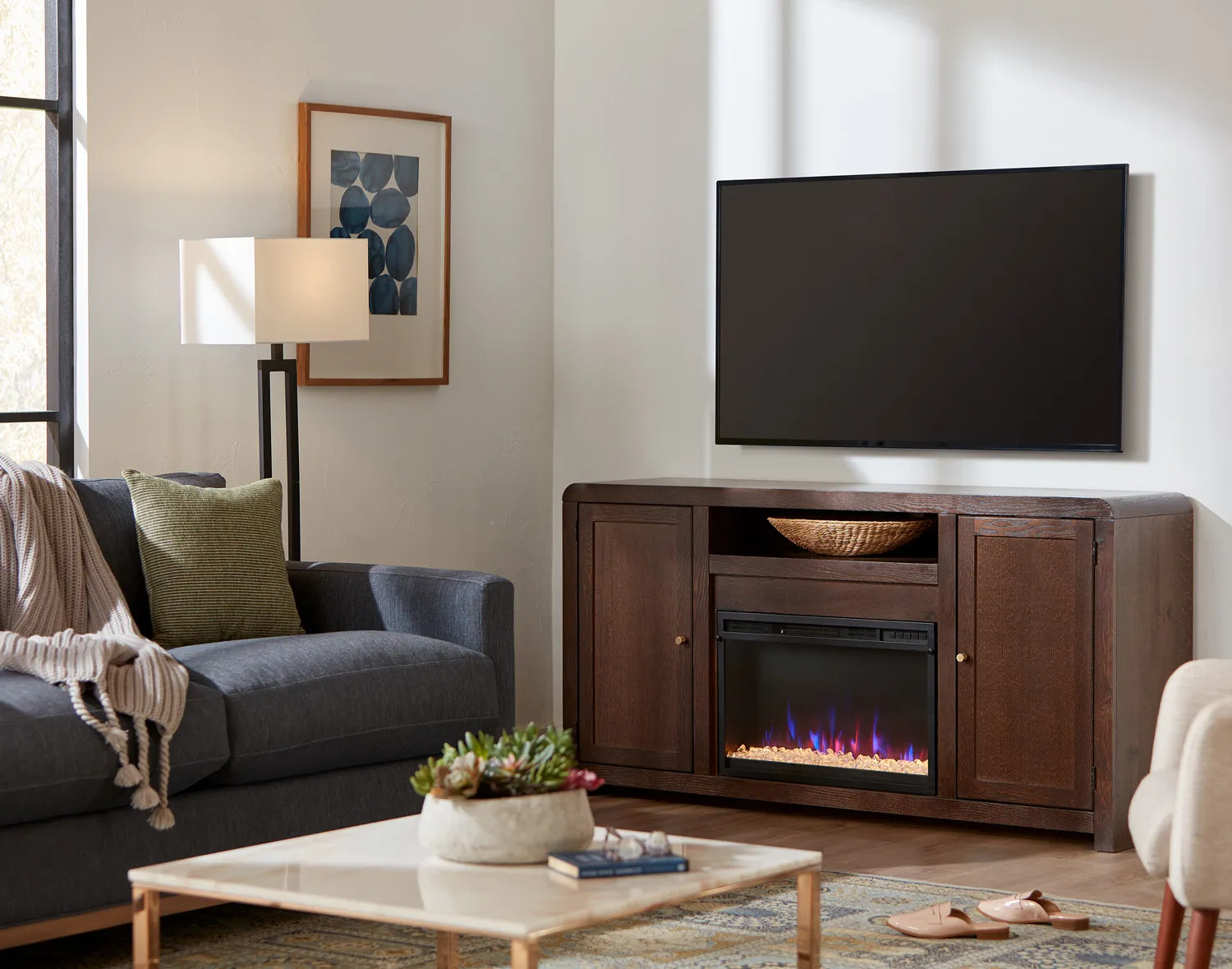 Ember Bed Choices: Choose between interchangeable logs or translucent rocks.