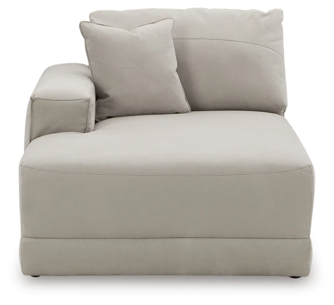 This left-arm facing corner chaise is made with faux nubuck leather upholstery. Fully finished on all sides, it pairs with other items in the series to make a modular sectional.