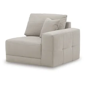 This right-arm facing corner chair is made with faux nubuck leather upholstery. Fully finished on all sides, it pairs with other items in the series to make a modular sectional.