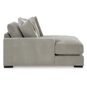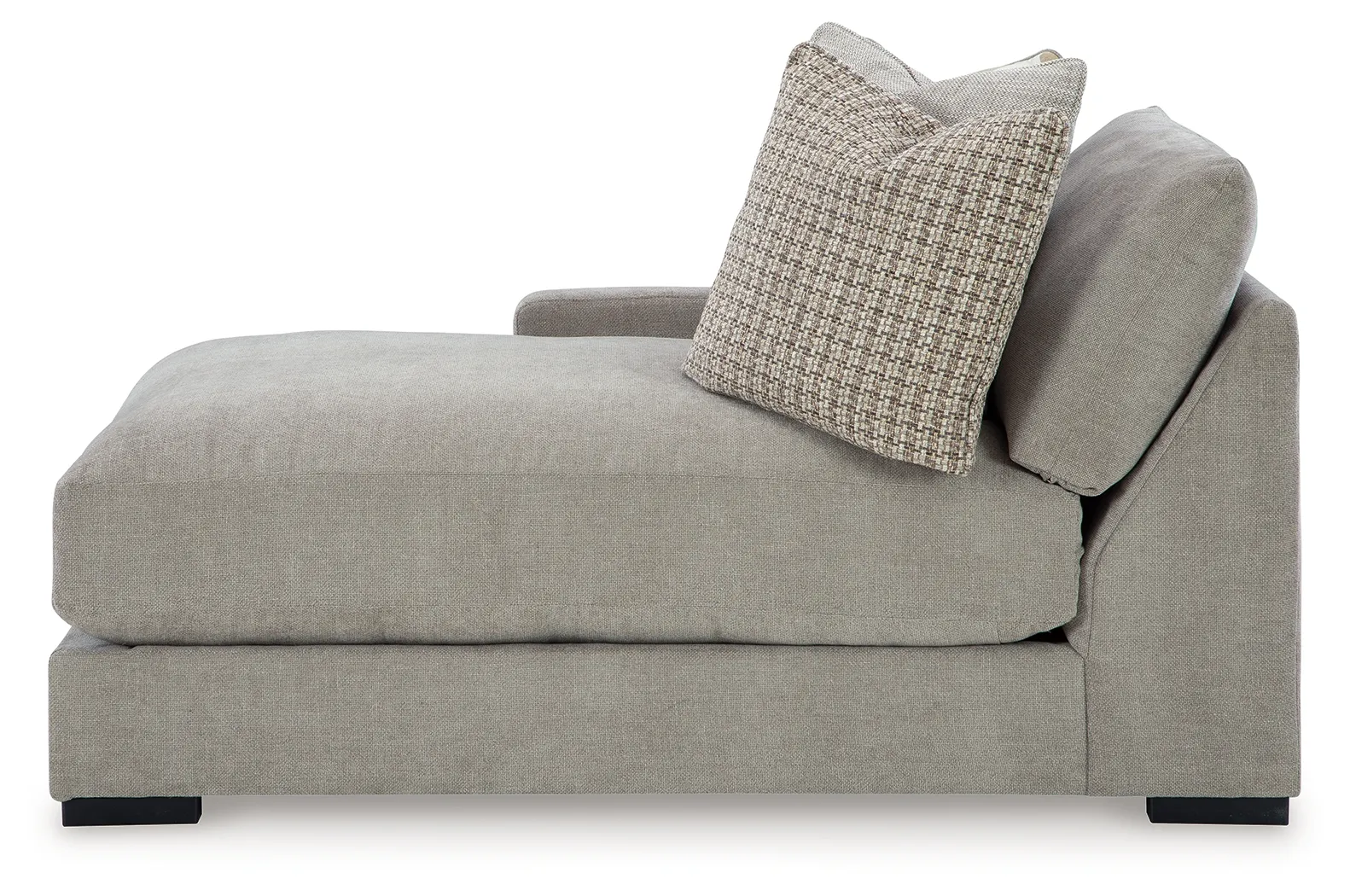 This left-arm facing corner chaise is made with polyester upholstery. Fully finished on all sides, it pairs with other items in the series to make a modular sectional.