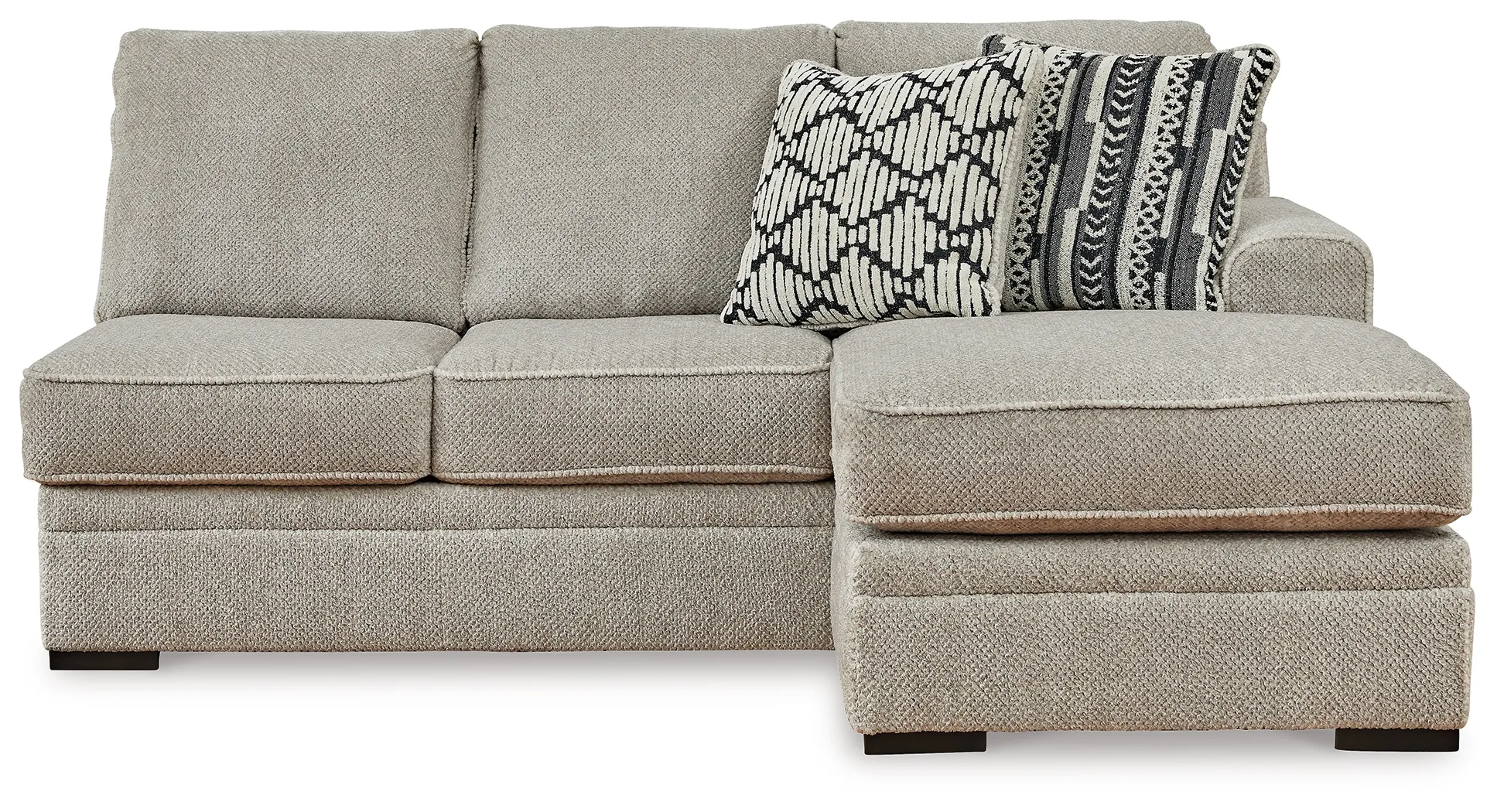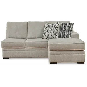 This right-arm facing sofa chaise is made with polyester upholstery. Pairs with other items in the series to make a sectional.