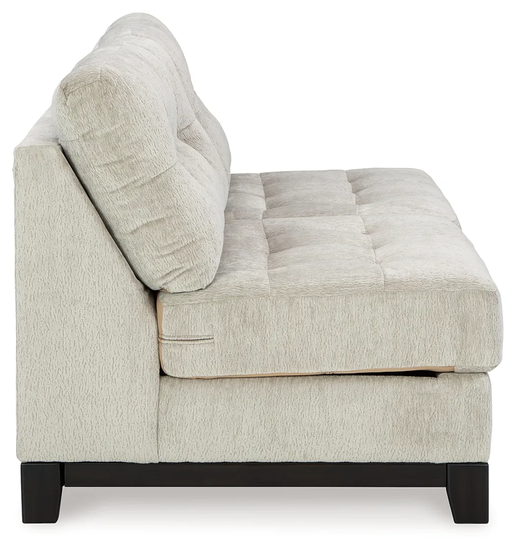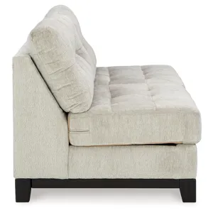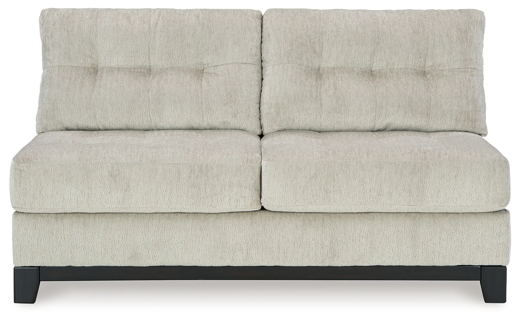 This armless loveseat is made with polyester upholstery. Pairs with other items in the series to make a sectional.