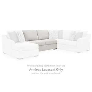 This armless loveseat is made with Next-Gen Nuvella™ (solution-dyed polyester) high-performance fabric. Pairs with other items in the series to make a sectional.