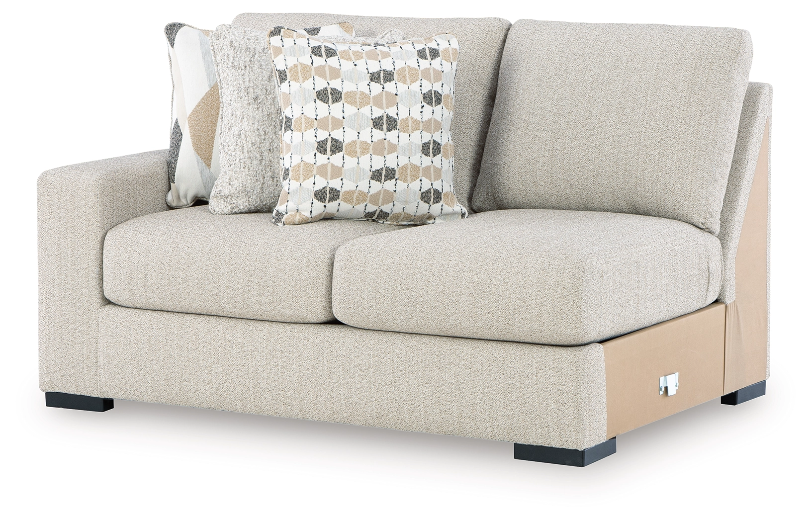 This left-arm facing loveseat is made with Next-Gen Nuvella™ (polyester) fade-resistant, washable fabric. Pairs with other items in the series to make a sectional.