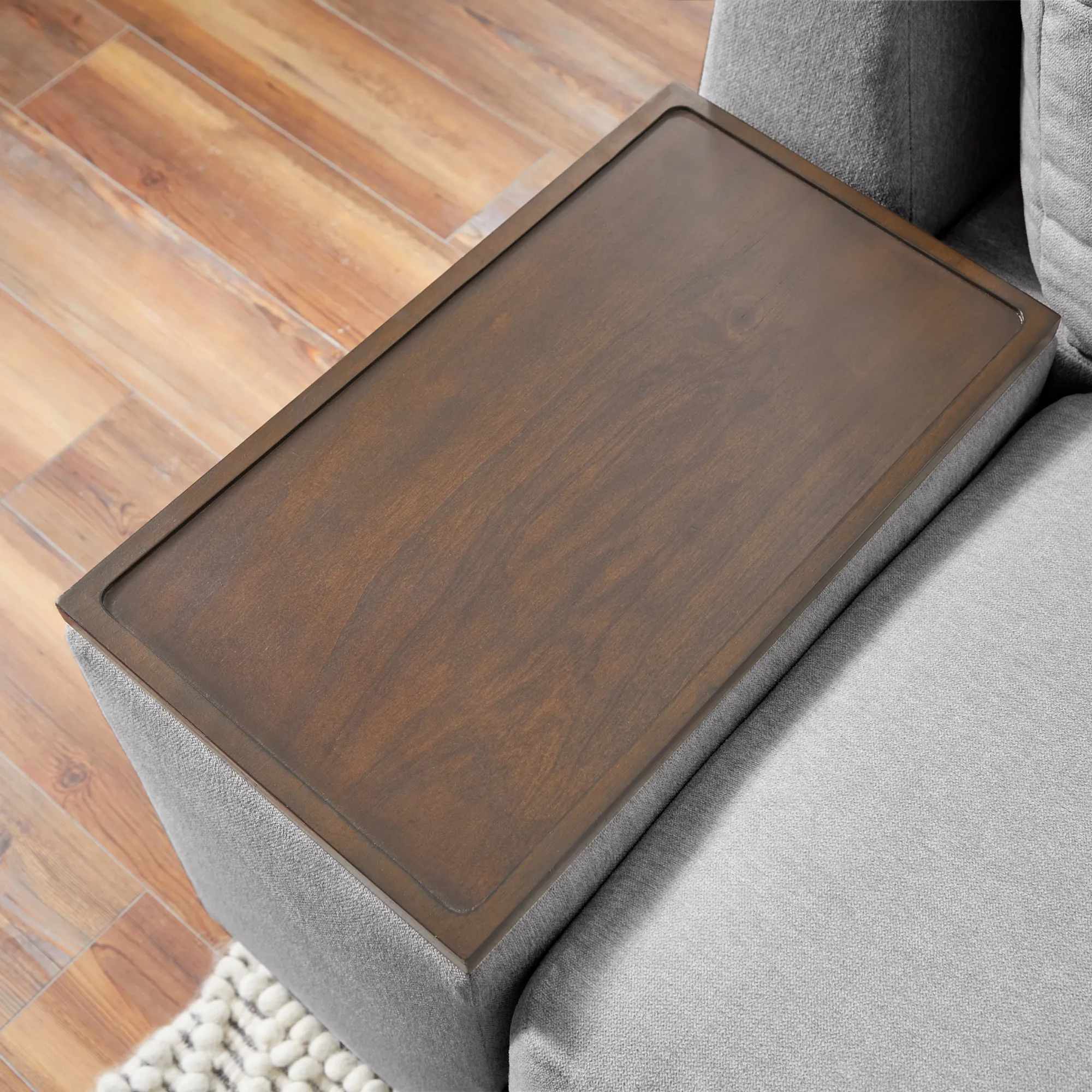 The wooden tray also doubles as a laptop or writing surface when lounging