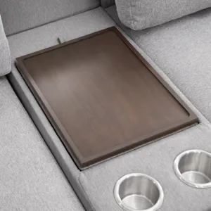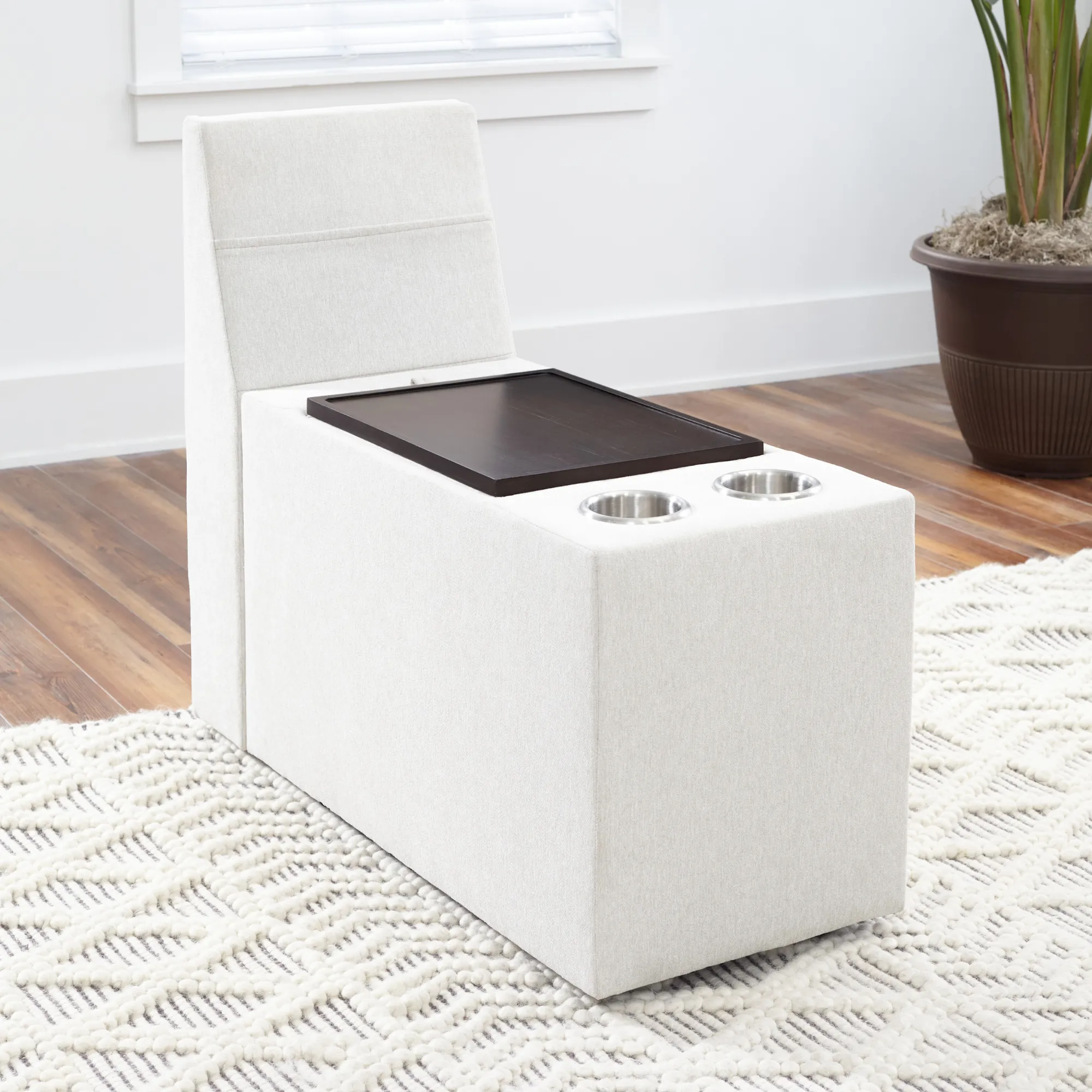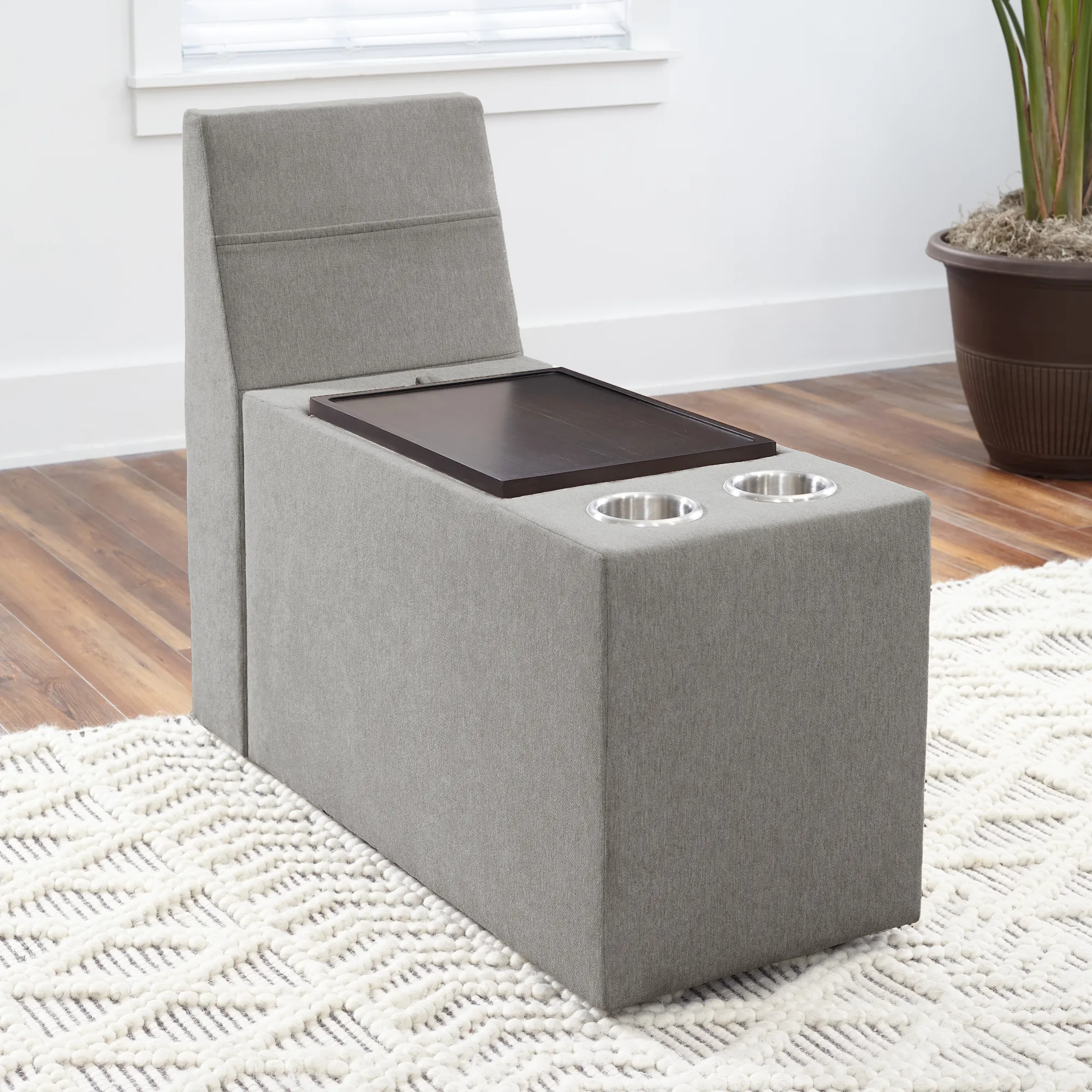 The removable tray also doubles as a laptop or writing surface when lounging and features padded upholstery on the bottom for comfort