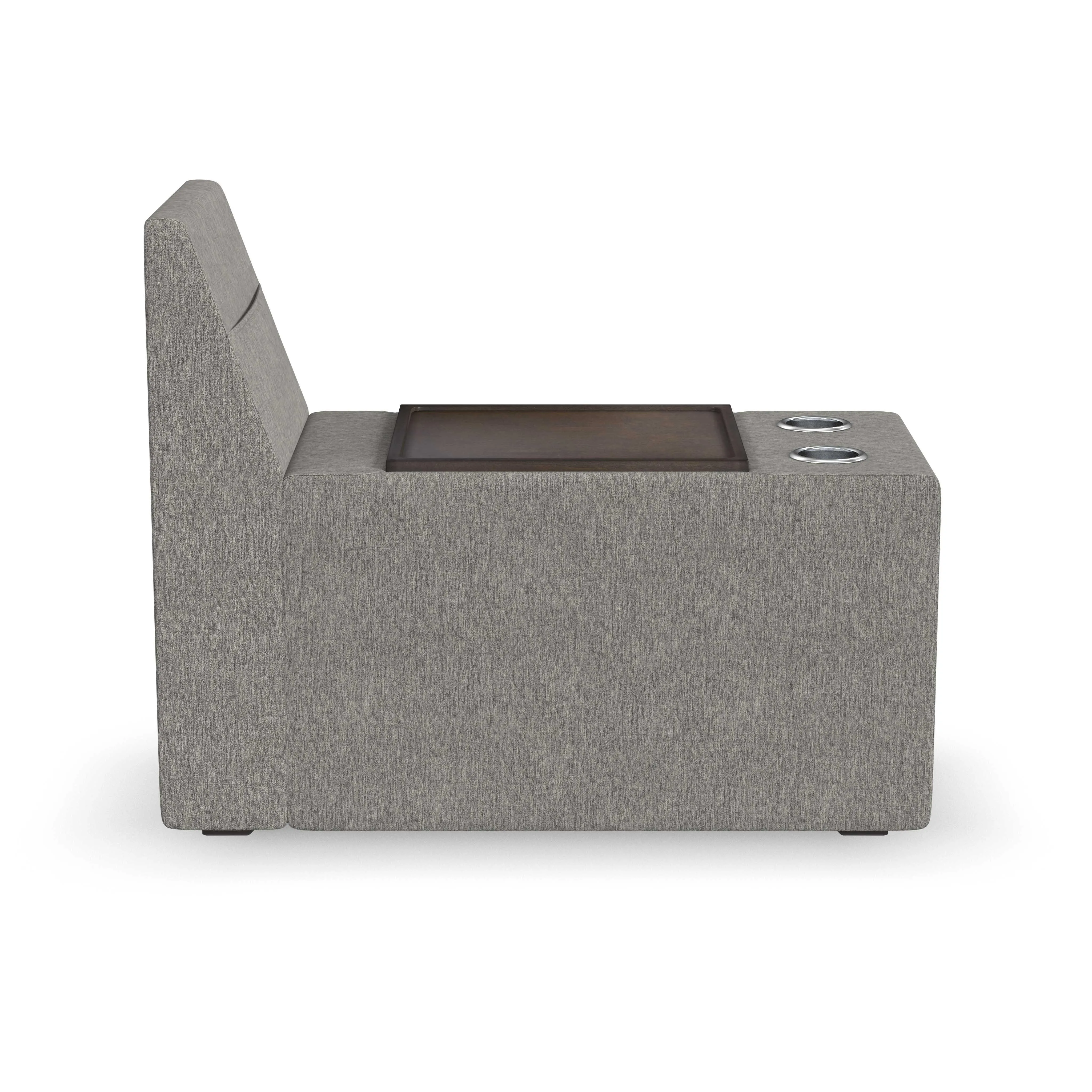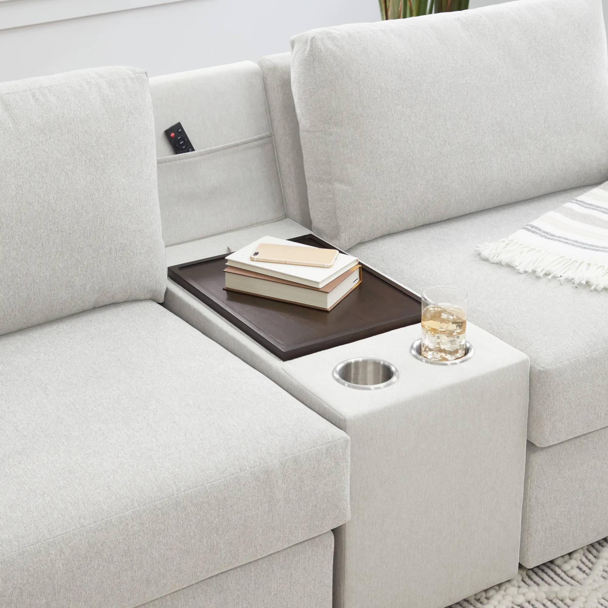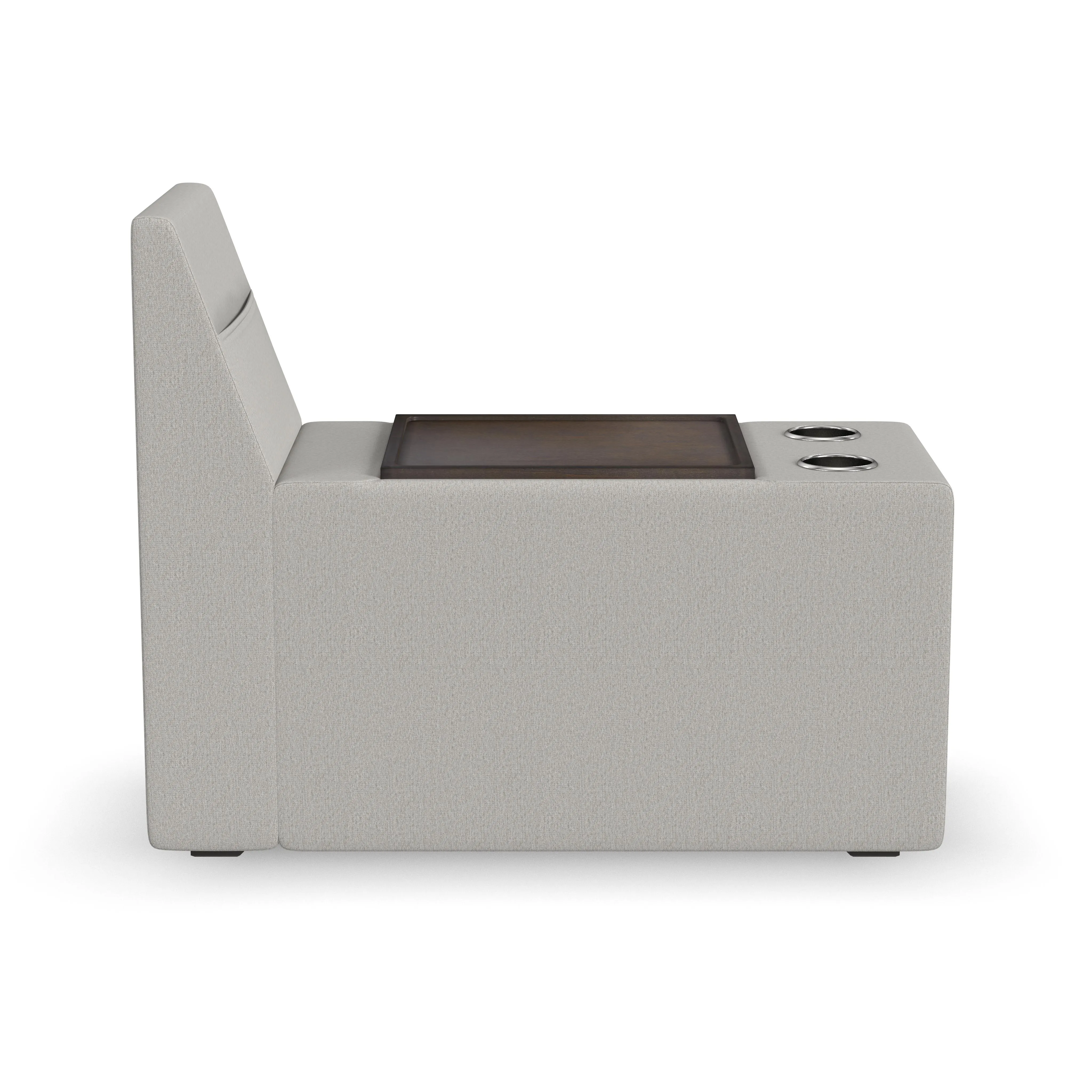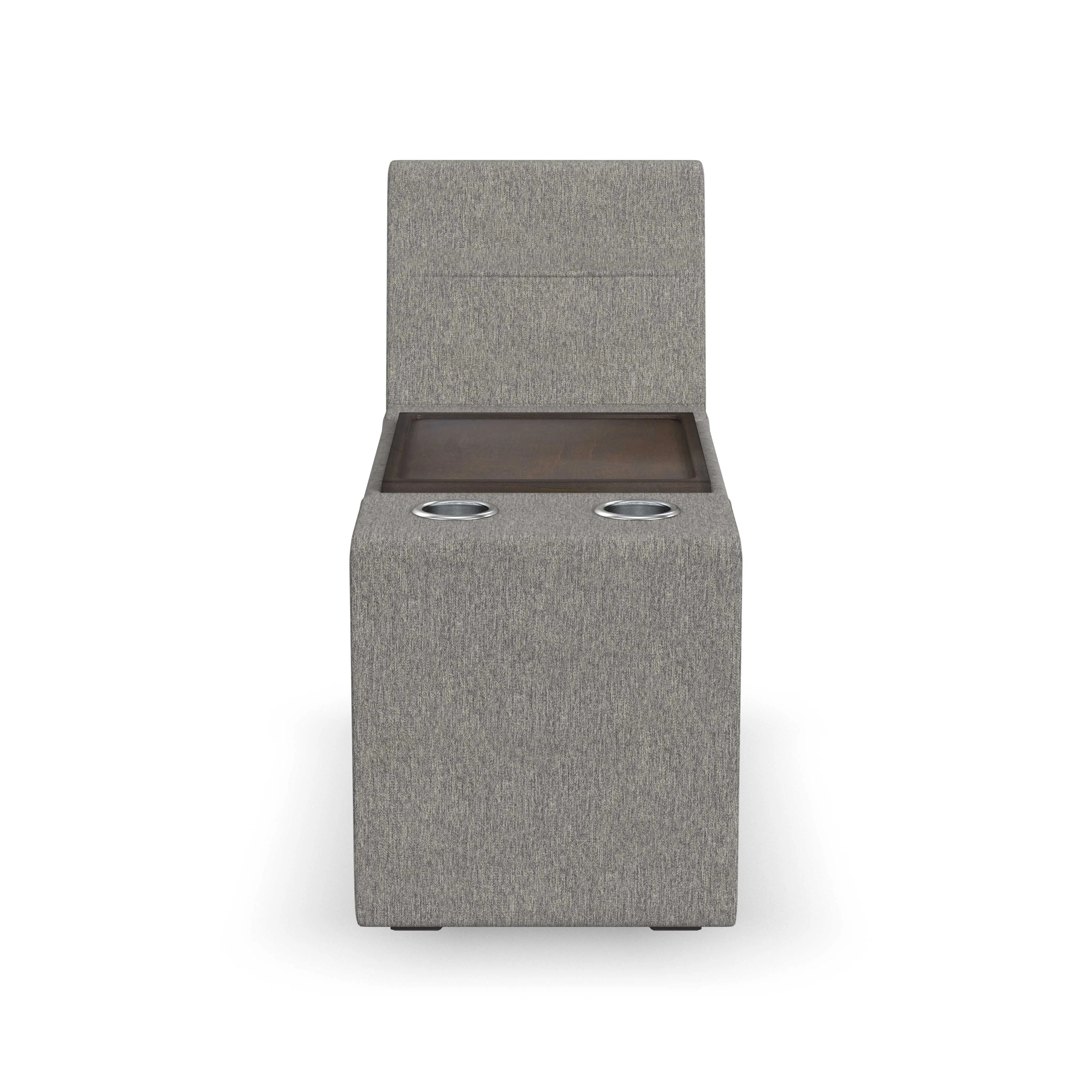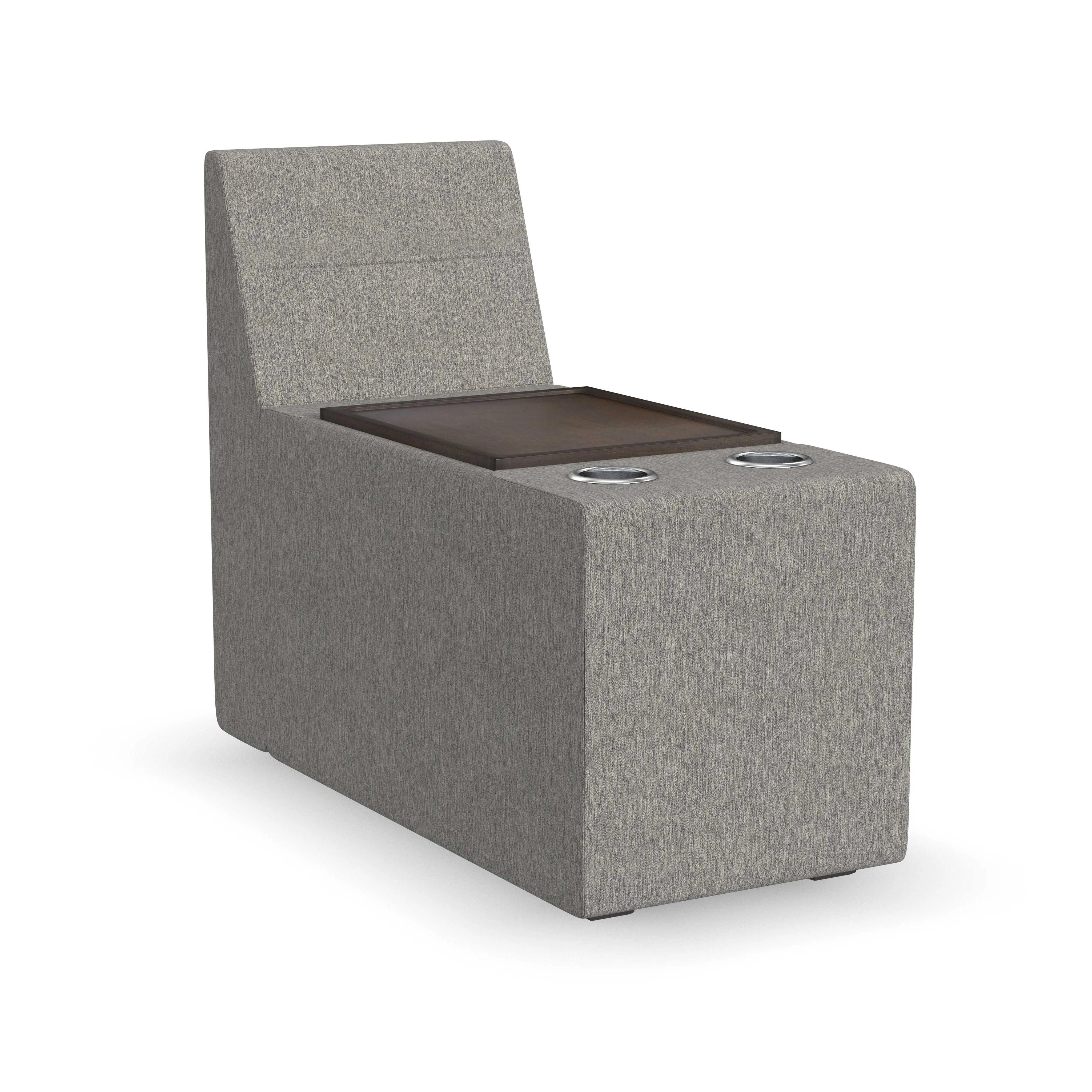 Evolve your Flex modular seating system with the Flex smart hub. Designed with family functionality in mind, this hub is the ultimate storage console. The main compartment fits belongings under the removable wood tray. Two cupholders provide a spot for drinks while the storage pouch keeps remotes and more nearby. Upholstered in sustainable, stain-resistant performance fabric that is easy to clean. Attaches to any Flex seat in seconds with a C-Clip.