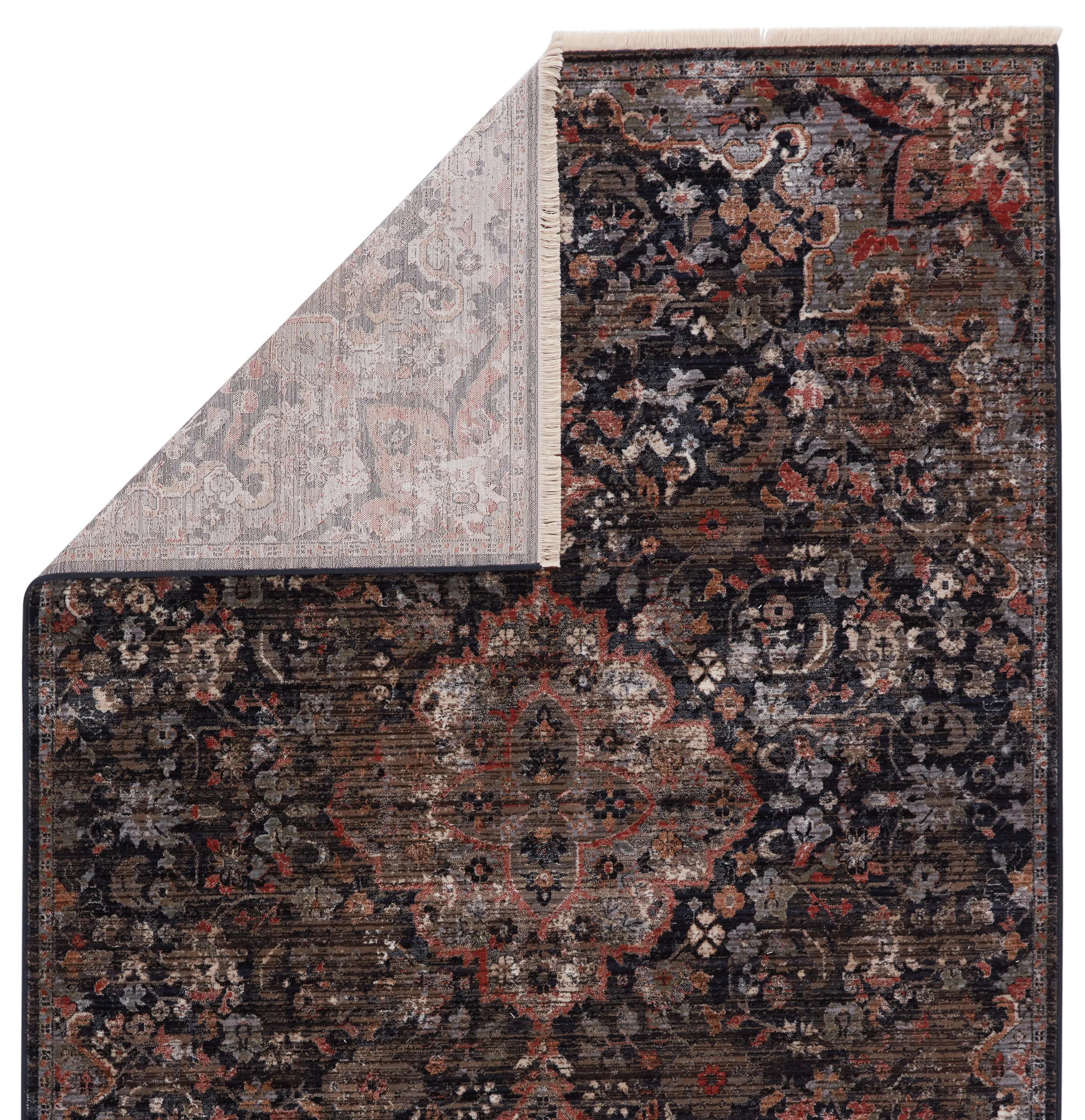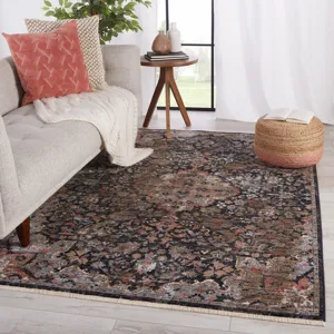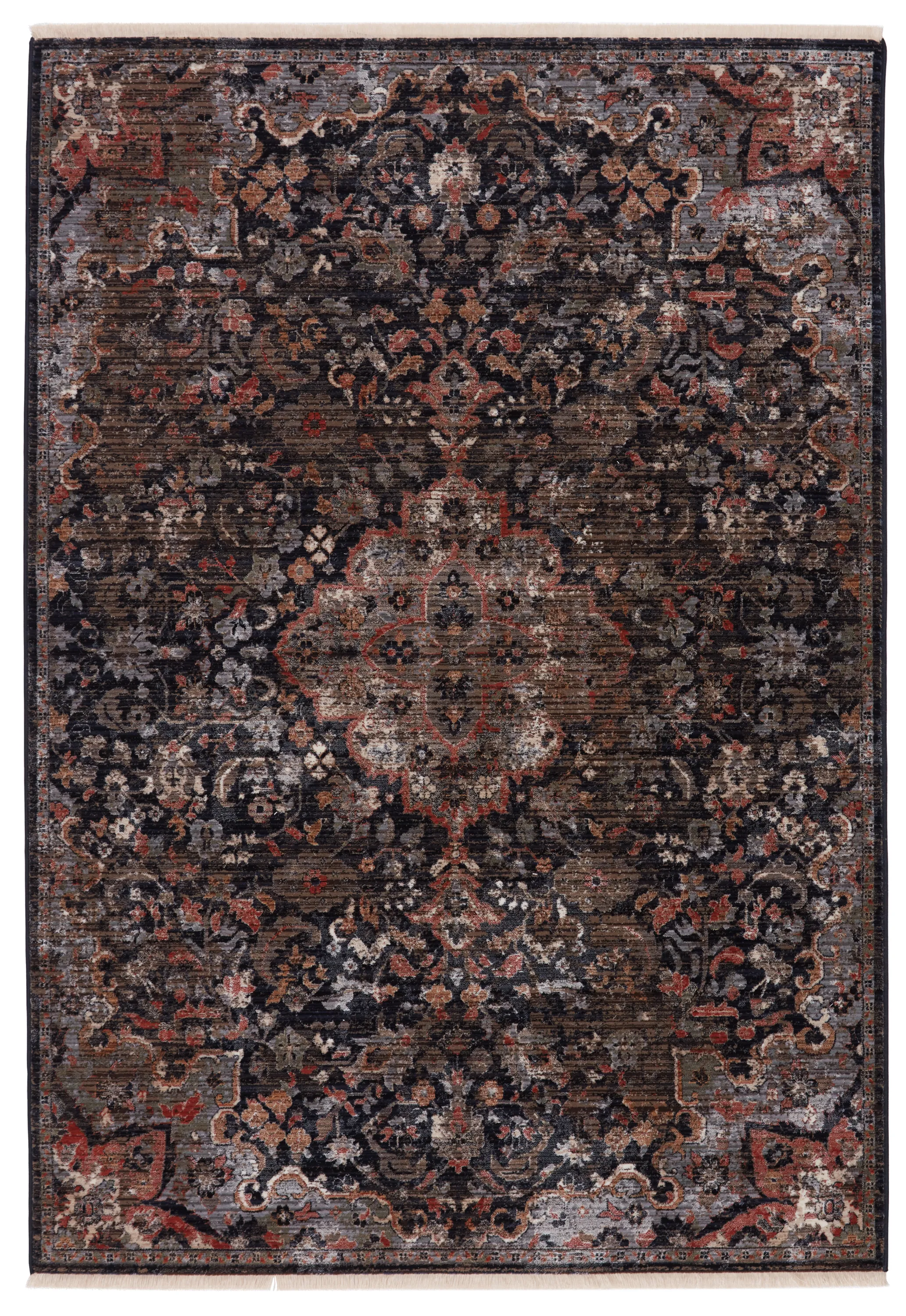 Inspired by the vintage perfection of sun-bathed Turkish designs, the Zefira collection showcases detailed traditional motifs that have been updated with on-trend, saturated colorways. The Amena rug boasts an elegantly distressed medallion in rich tones of black, navy, dark taupe, red, and gray. This power-loomed rug features cotton fringe detailing, a natural result of weft yarns, that echoes hand-knotted construction and adds brilliant texture to the plush, durable polypropylene pile.