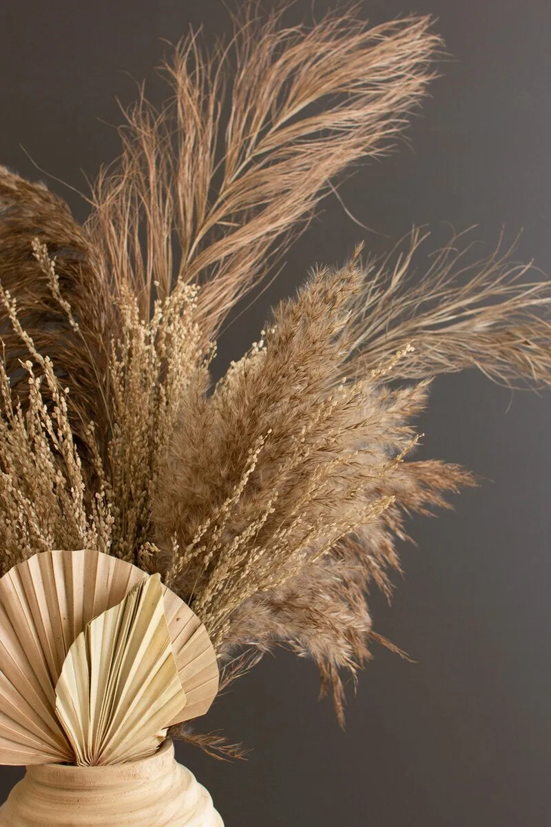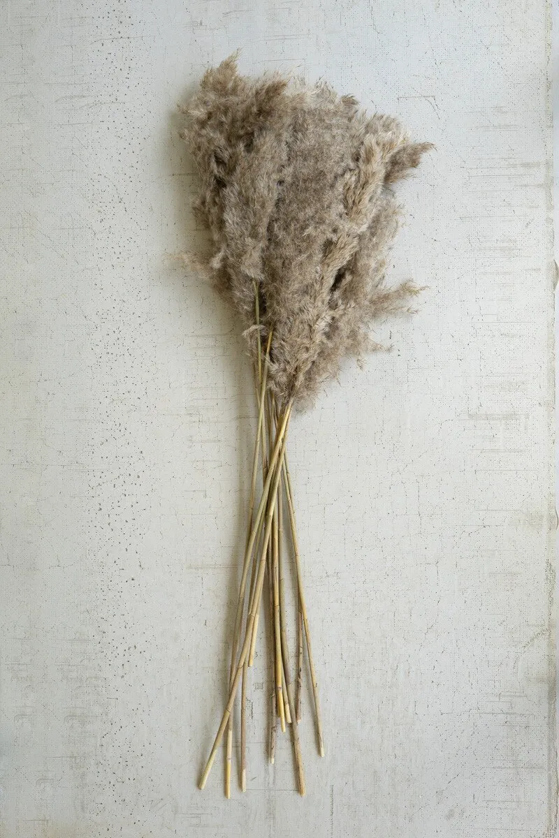 Use this large bundle of pampas grass for your large vase and basket displays. The natural color will blend with any décor and you can trim these 39″ stems to fit any vase. Use for a touch of natural texture anywhere in your home.