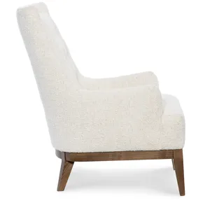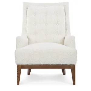 Make a tailored statement with the Holden Wing Chair with Buttons. This transitional wing chair showcases tight seat and back construction with elegant button tufting and modern sloped arms. Finished with a wood base and upholstered in luxurious fabric.