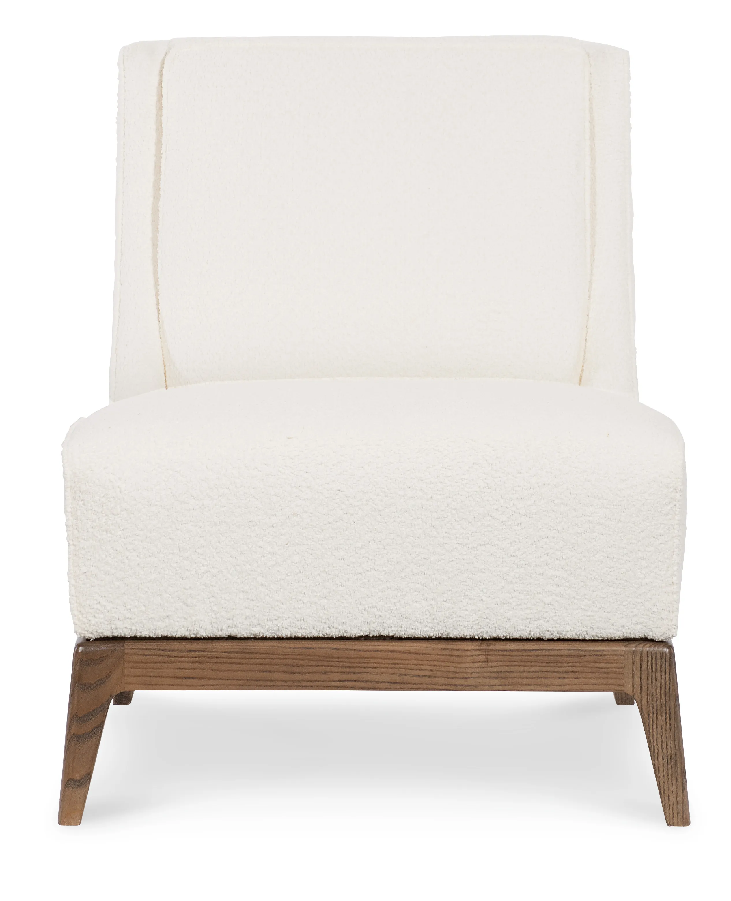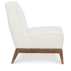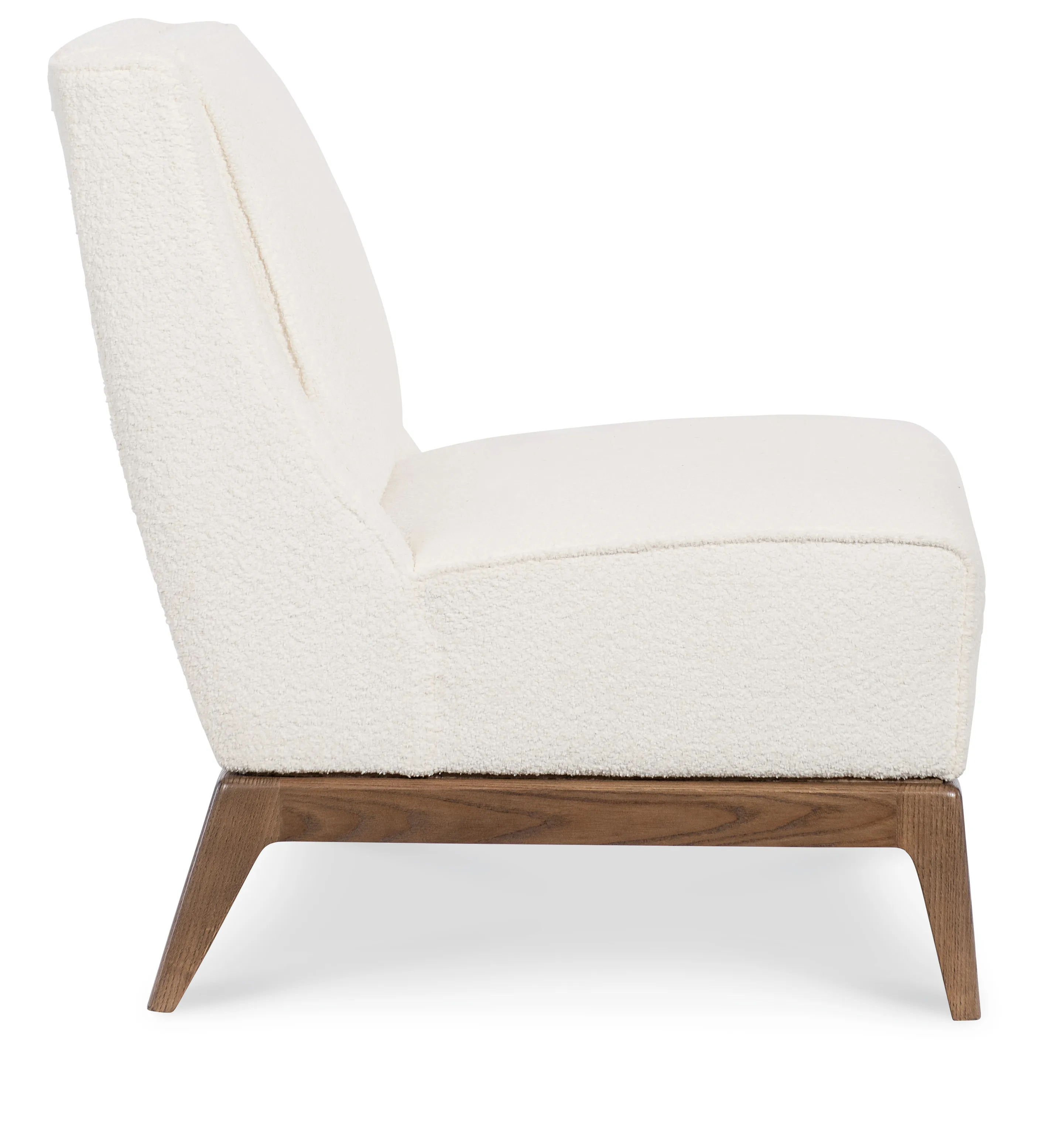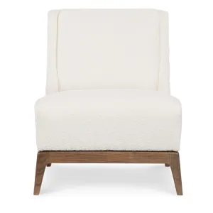 Make a modern statement with the Lombard Exposed Wood Chair. Featuring a tight seat and back, armless silhouette, and fabric frame with tapered legs, this accent chair blends clean lines and comfort, perfect for minimalist living spaces.