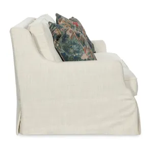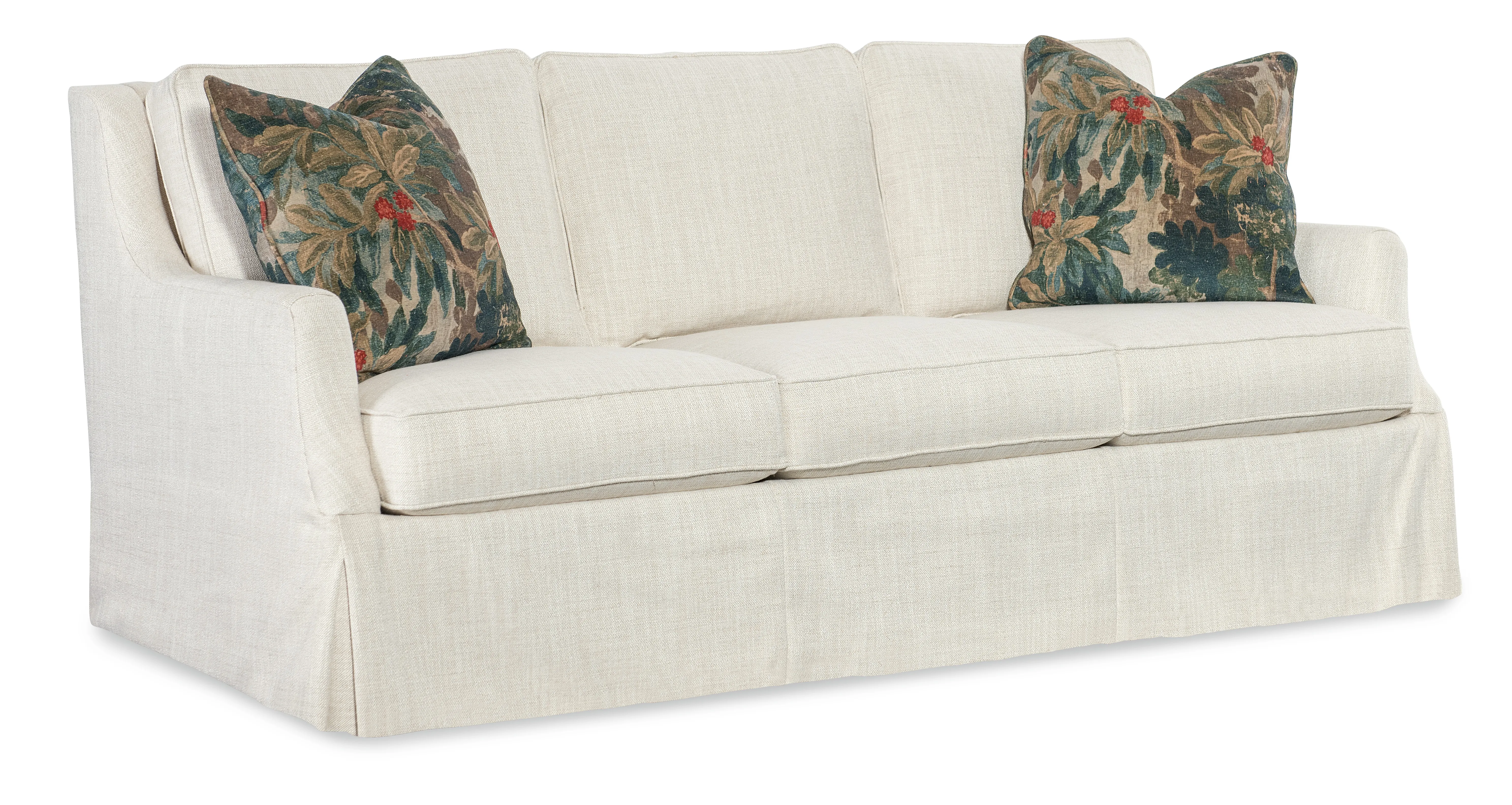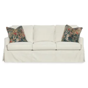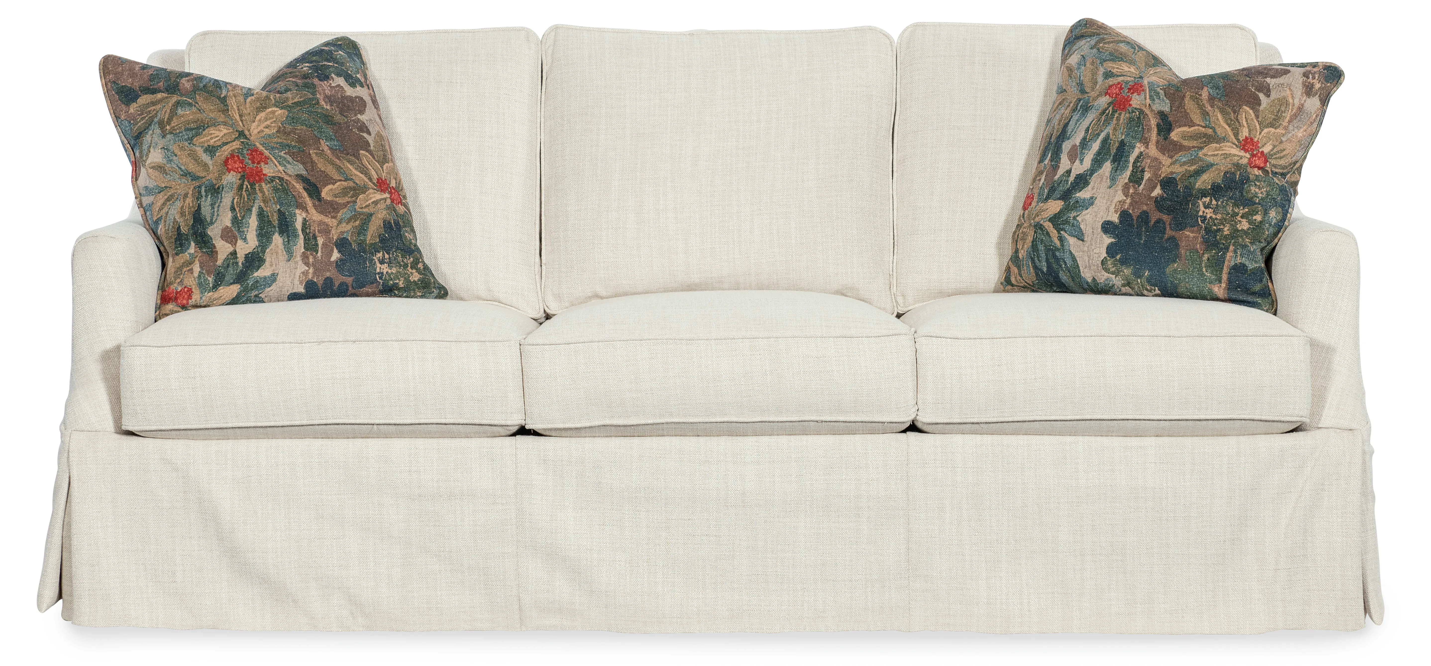 Designed for classic comfort, the Iris Skirted 3 over 3 Sofa showcases three over three loose cushions, a full skirted bottom, and fabric upholstery. Ideal for transitional living rooms looking for refined style and lasting comfort.