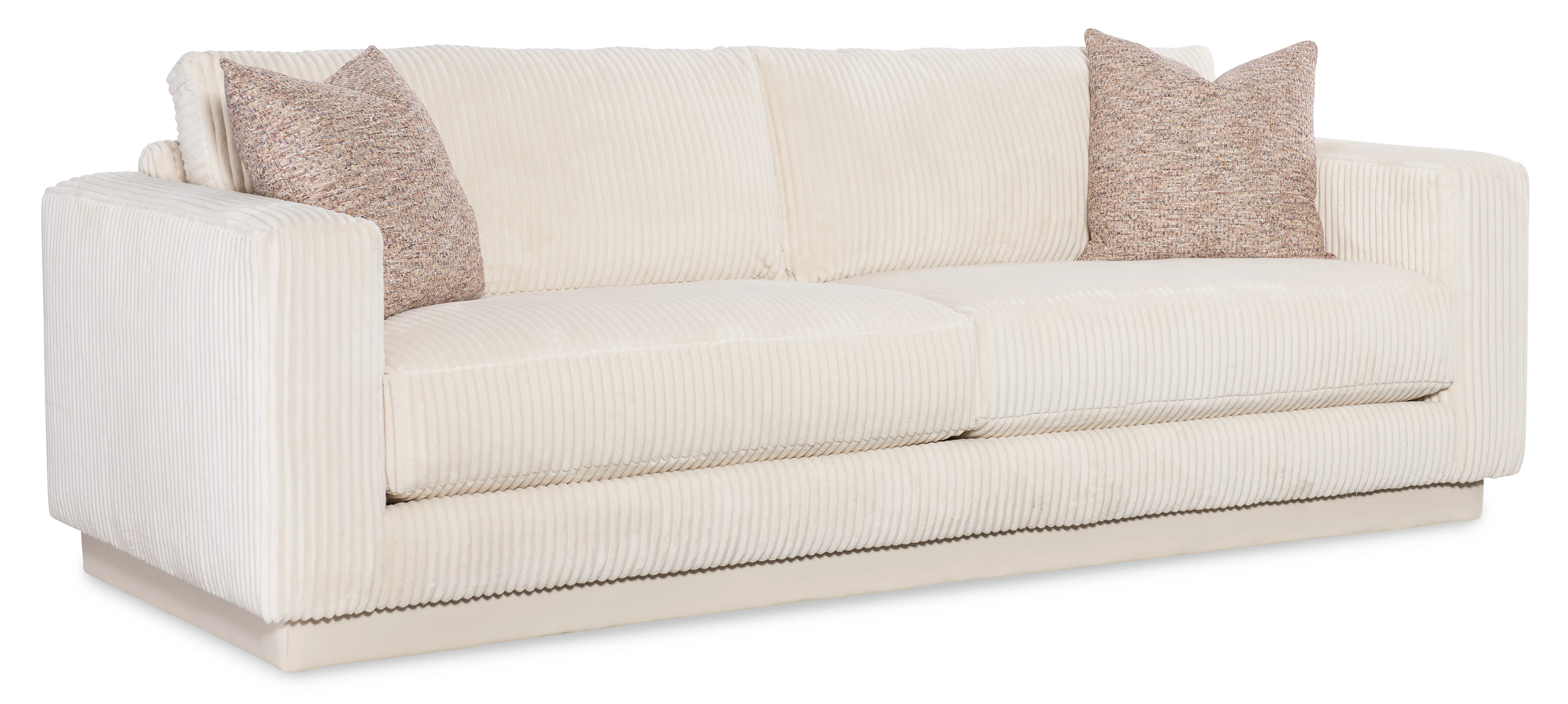 The Flynn 8 ft. 2 over 2 Sofa delivers comfort and tailored style with its clean lines and plush cushions. Upholstered in fabric, this transitional piece includes two loose seat and back cushions with matching throw pillows, perfect for relaxed sophistication.