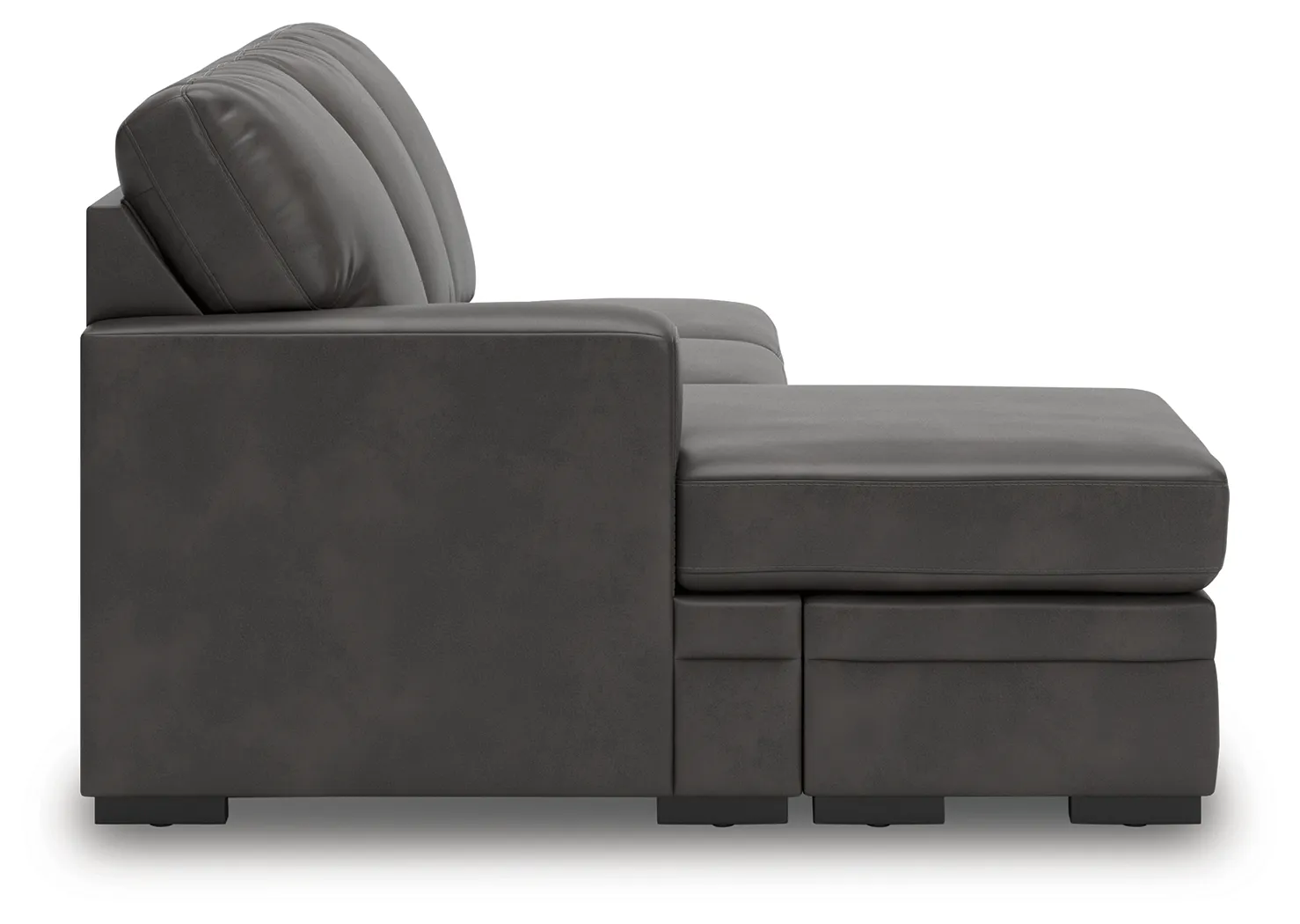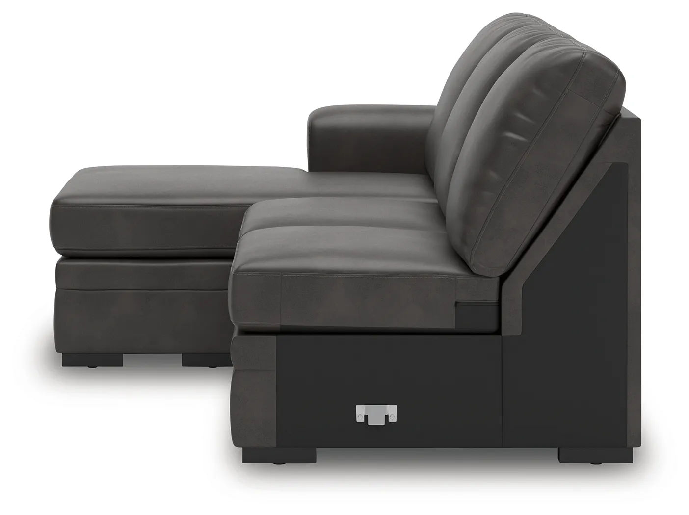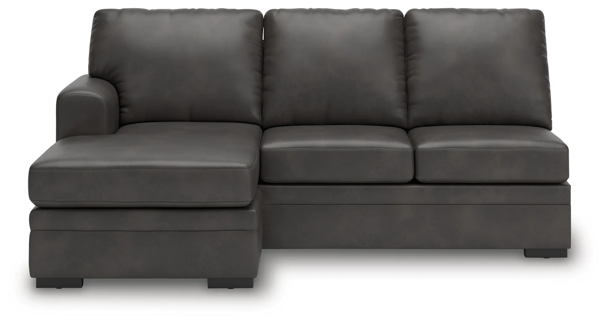 This left-arm facing sofa chaise is made with faux leather upholstery. Pairs with other items in the series to make a sectional.
