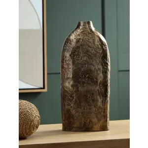 This stunning vase is a perfect way to display dried or faux florals on your dining table or mantel. Made with cast aluminum in an antiqued brass tone, it creates a casual yet captivating focal point that complements various decor styles. While the vase looks great standing alone as a decorative accent, consider pairing it with its smaller twin (sold separately) for a pulled-together look. Did we mention the matching candle holder?