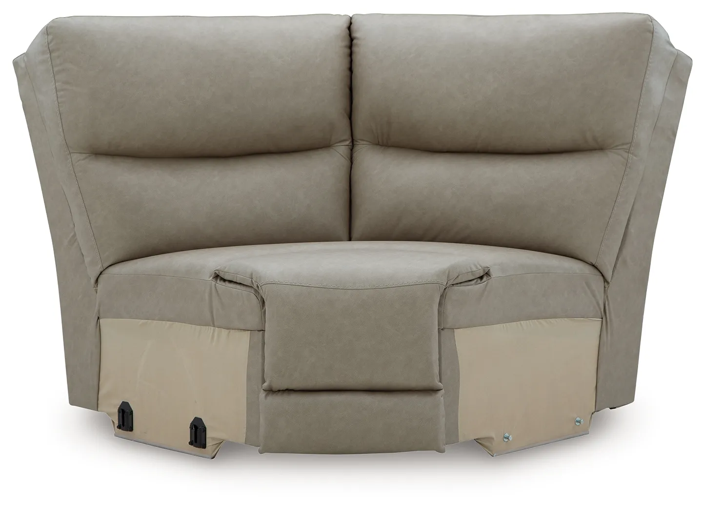 This wedge is made with faux leather upholstery. It pairs with other items in the series to make a modular sectional.