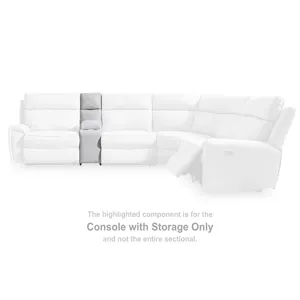 This console with storage is made with polyester upholstery. It pairs with other items in the series to make a modular sectional.